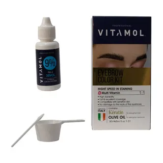 کیت رنگ ابرو Vitamol مدل DB (رنگ قهوهای تیره) با حجم ۳۰ میلیلیتر، شامل رنگ ابرو و اکسیدان مخصوص میباشد. این محصول با فرمولاسیون حرفهای، حاوی کراتین و روغن زیتون بوده و کمک میکند ابروها بهصورت یکنواخت رنگ شوند، حالت بگیرند و جلوهای طبیعی و خوشفرم پیدا کنند.